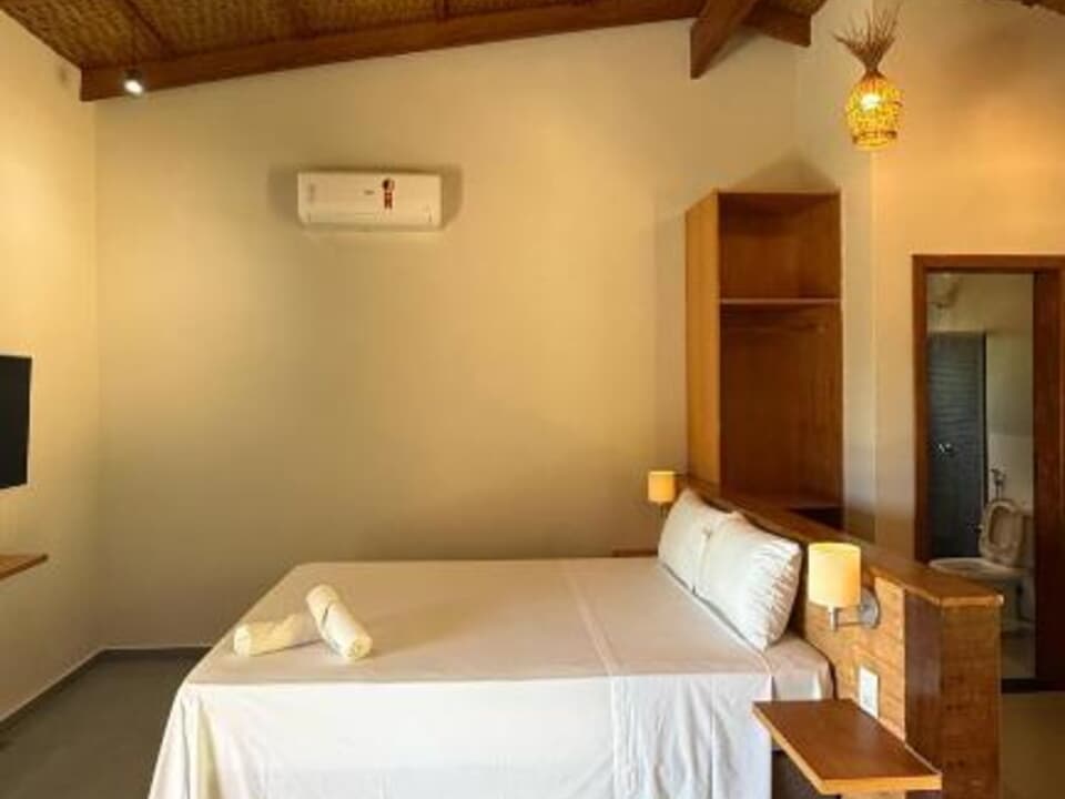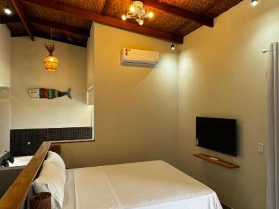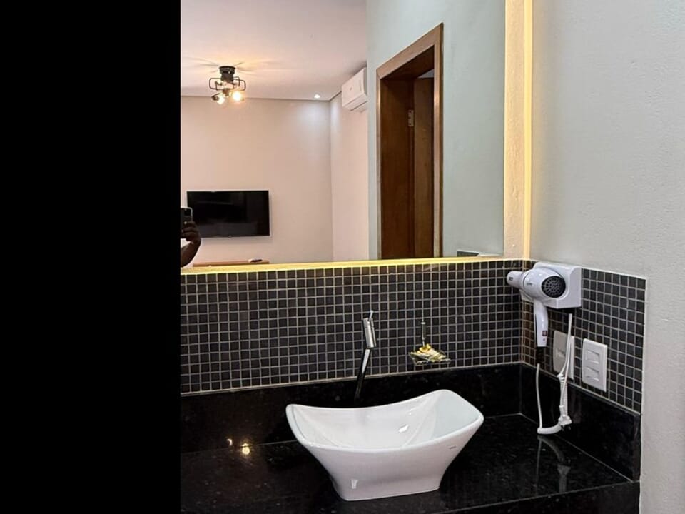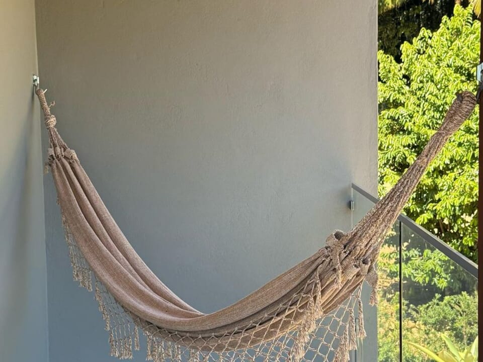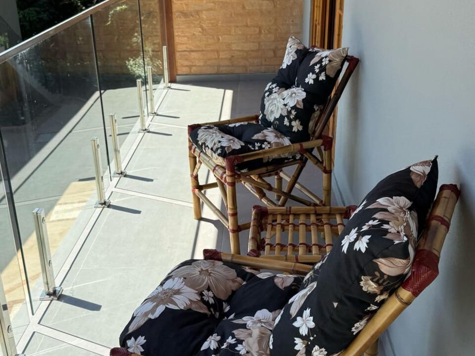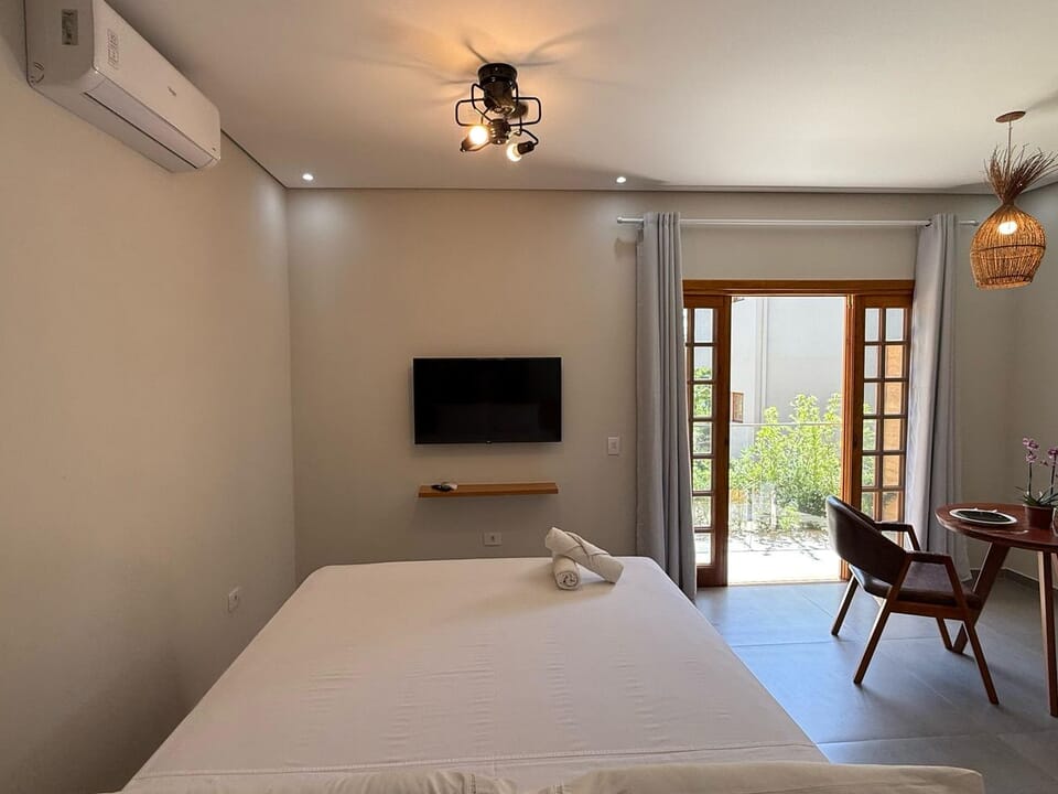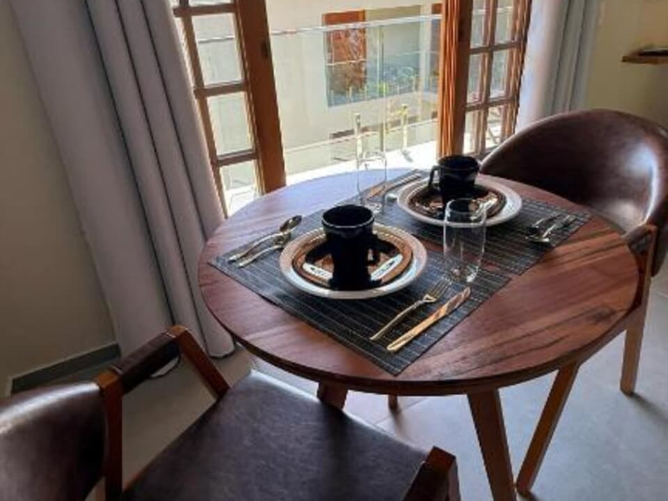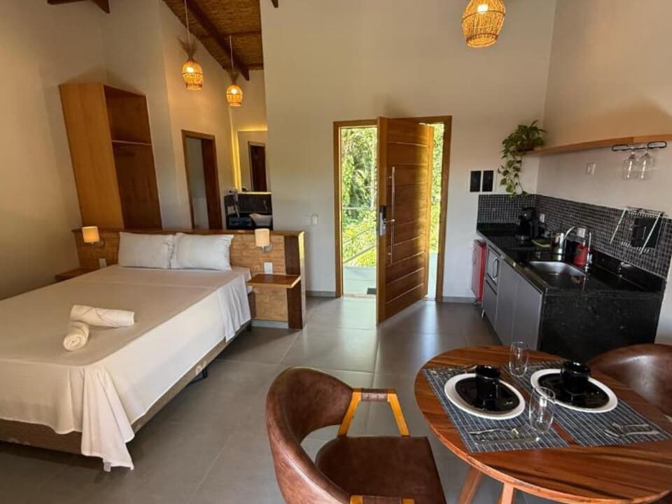 Equipado com uma cozinha compacta ( Pratos, talheres, copos e taças), micro-ondas, frigobar, cafeteira Dolce Gusto. Cama Queen super confortável, Tv 43" Smart, ventilador de teto, ar condicionado, guarda roupas, banheiro amplo, chuveiro elétrico e secador de cabelo. Linda sacada com cadeiras e rede para um momento relaxante.